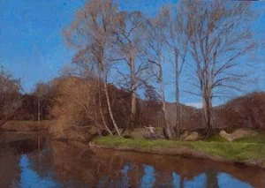 Riverbank with Boy Running oil on canvas 50 x 70cm
