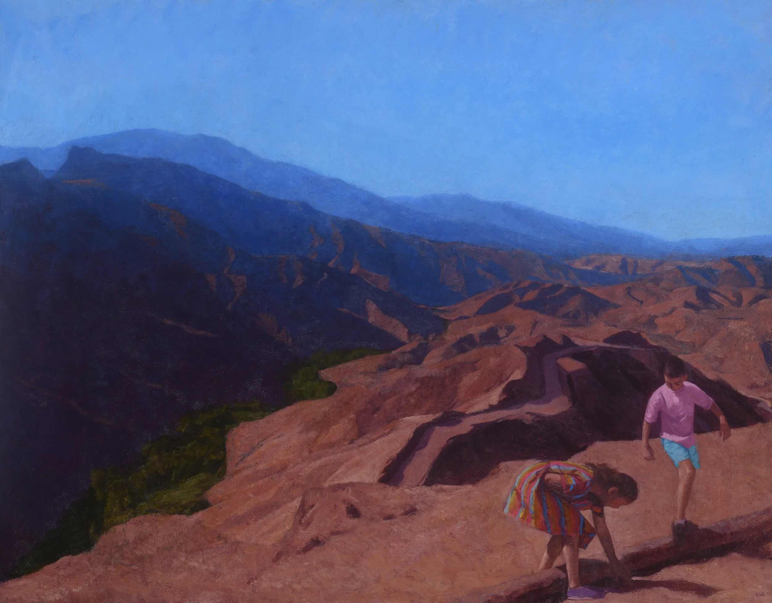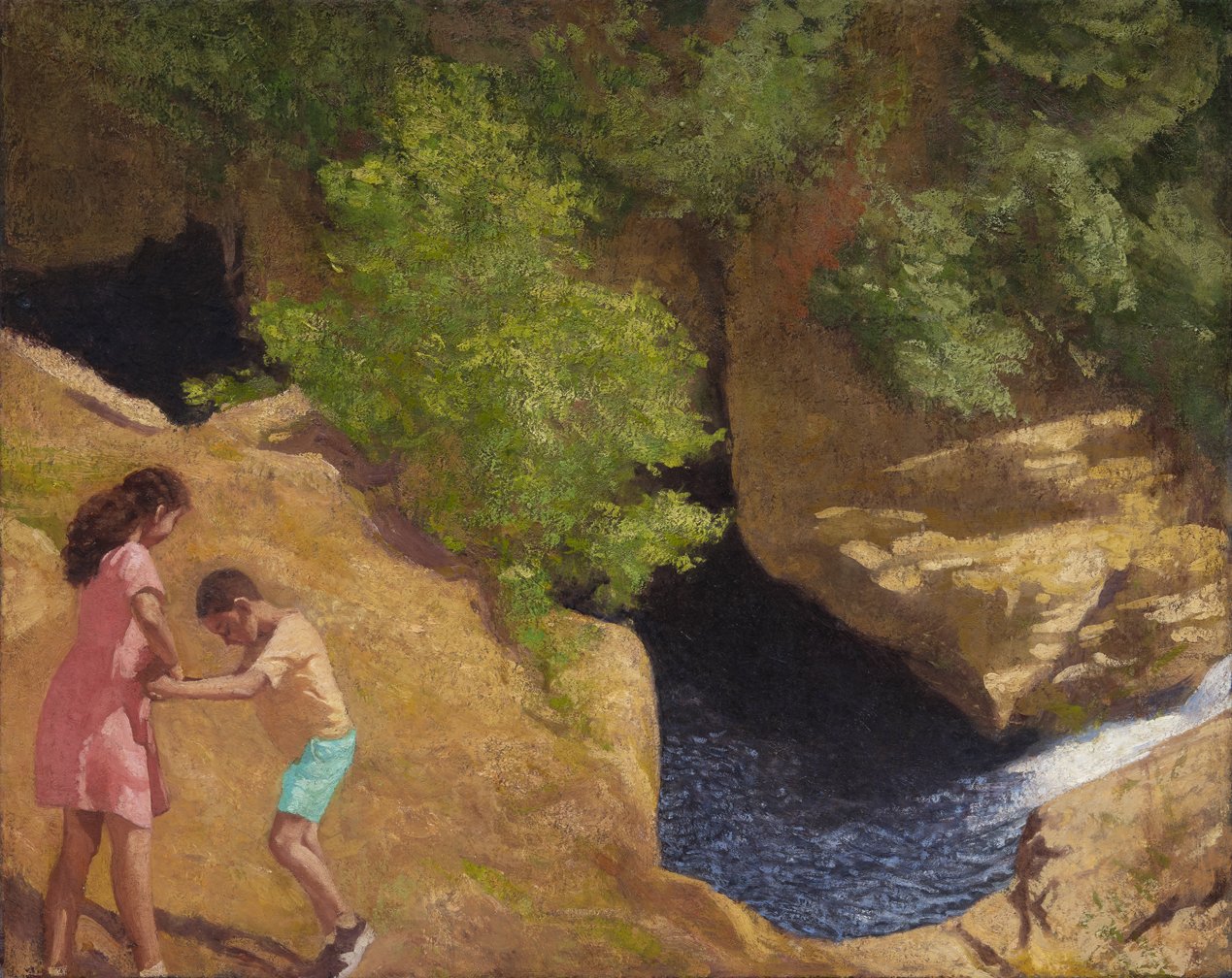 Boys Playing in a Mountain River 29 x 27cm | Oil on Card